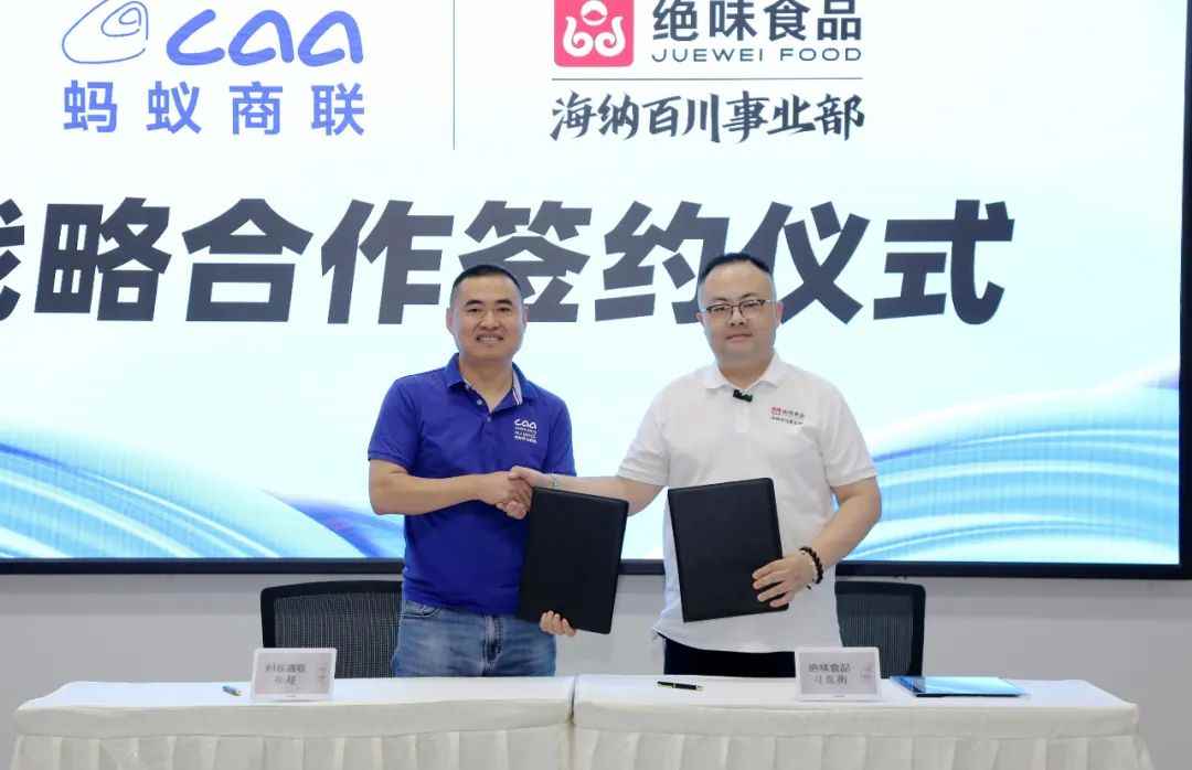 2025年6月19日 星期四 河南鄭州——今日,在螞蟻商聯(lián)總部舉辦的《助力調(diào)改 超市加工區(qū)調(diào)改研討會(第二期)》現(xiàn)場,螞蟻商聯(lián)與絕味食品海納百川事業(yè)部正式簽署戰(zhàn)略合作協(xié)議。螞蟻商聯(lián)總經(jīng)理鄭超與絕味食品海納百川事業(yè)部總經(jīng)理司胤衡代表雙方簽約,宣布將依托各自資源優(yōu)勢,共同推動商超加工區(qū)的定制化調(diào)改與效率升級,助力零售行業(yè)高質(zhì)量發(fā)展。